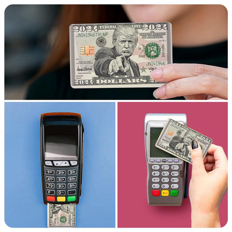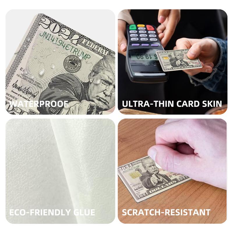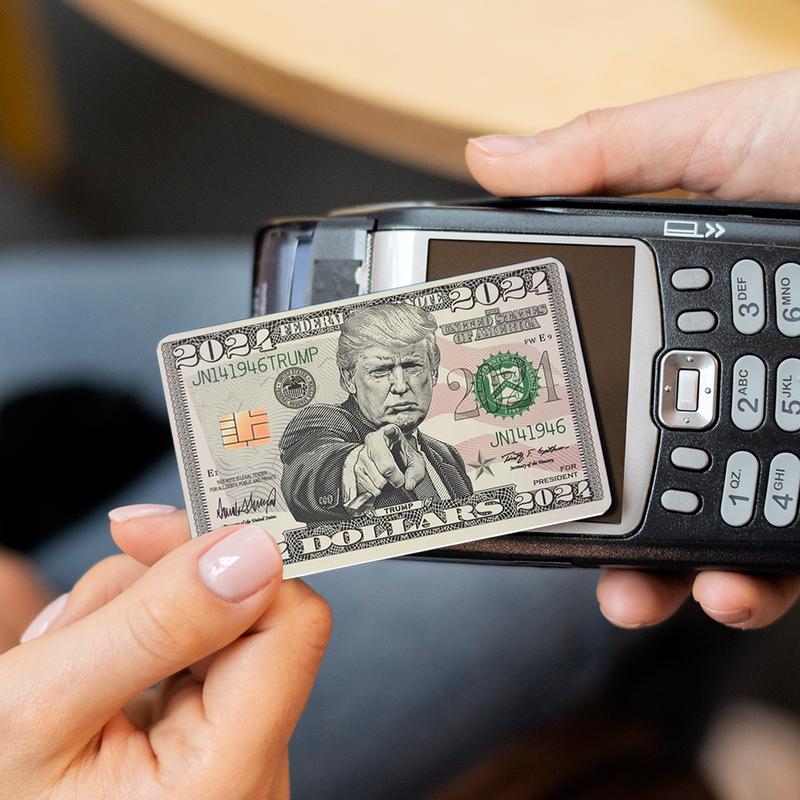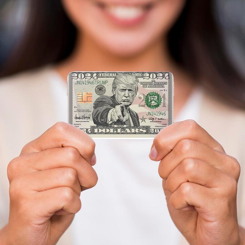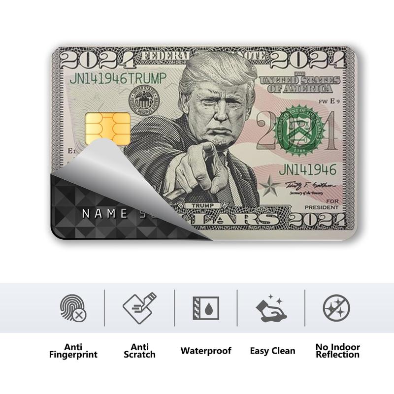 Bold Trump 2024 Bill Design: Show your political support with this eye-catching Donald Trump 2024 design, turning your credit and debit cards into bold statement pieces that stand out every time you make a transaction.