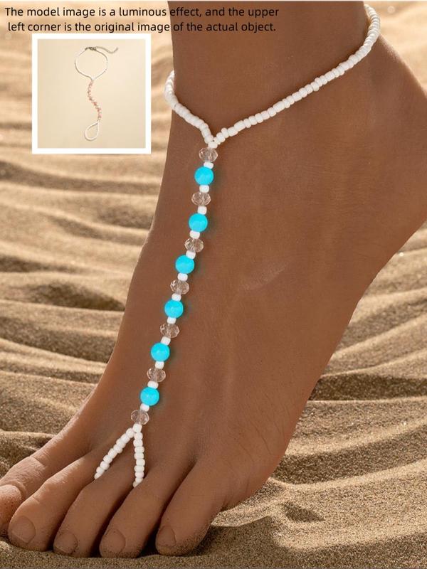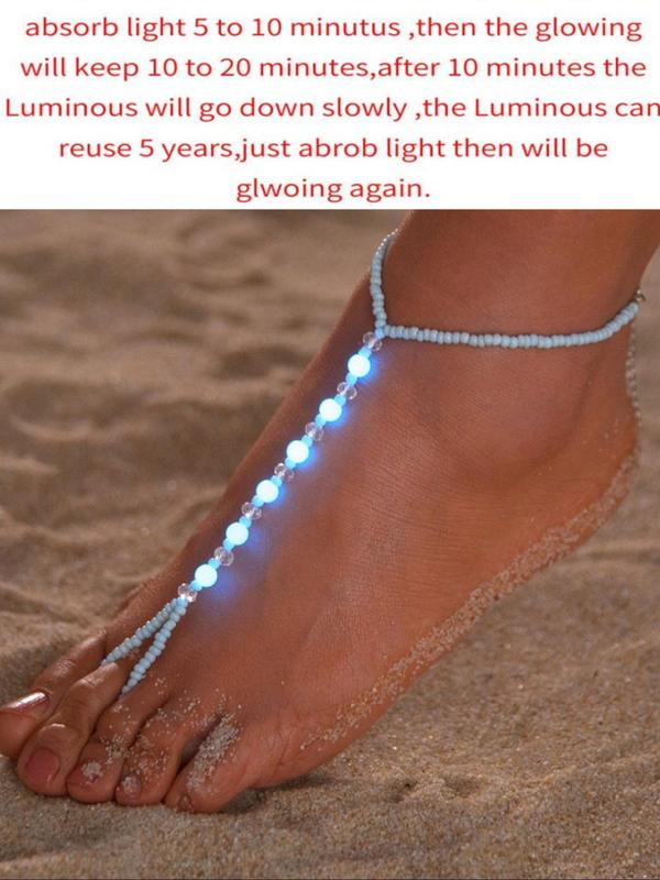 【Glow-in-the-Dark Feature】: Incorporating phosphorescent beads, this anklet illuminates softly in the dark, adding a unique charm to beach and evening outings.