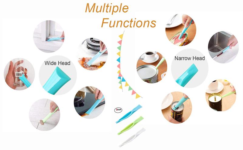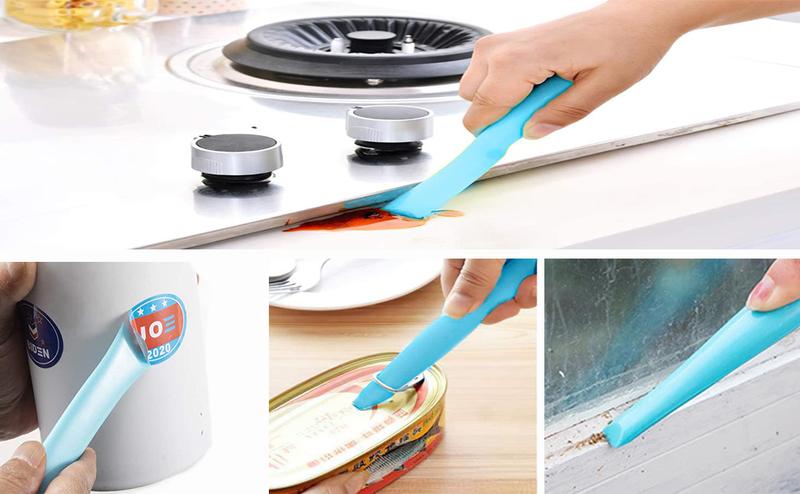 -The versatile cleaning tool provides a quick, safe and convenient way to remove small amounts of common substances, such as dried food, candle wax, soap, spatters of latex paint, adhesive stickers, gums and labels, grease and grime, from most household and automotive surfaces. It could even be used to open bottles and cans. It can be used on glassware, dishes, windows, counter tops, stove tops, sinks, bathtubs, metal shower door tracks, and much more.