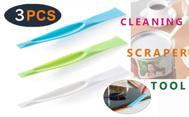 Cleaning Scraper Tool Kitchen Plastic Scraper Multipurpose Stiff Grill Scraper Scratch Free Cleaning Tool Can Opener Sticker Scraper Label Remover Gum Scraper Bottle Opener – 3 PCS