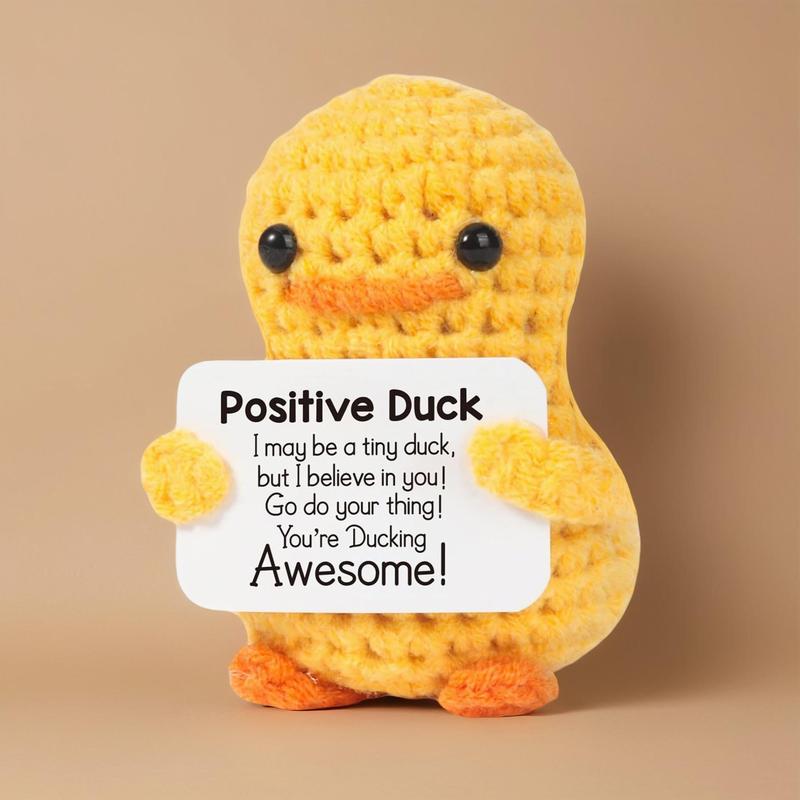 Cute Knitted Duck with Positive Card, Handmade Emotional Support Crochet Doll for Gift, DIY Knitting Supplies for Home Office Decor