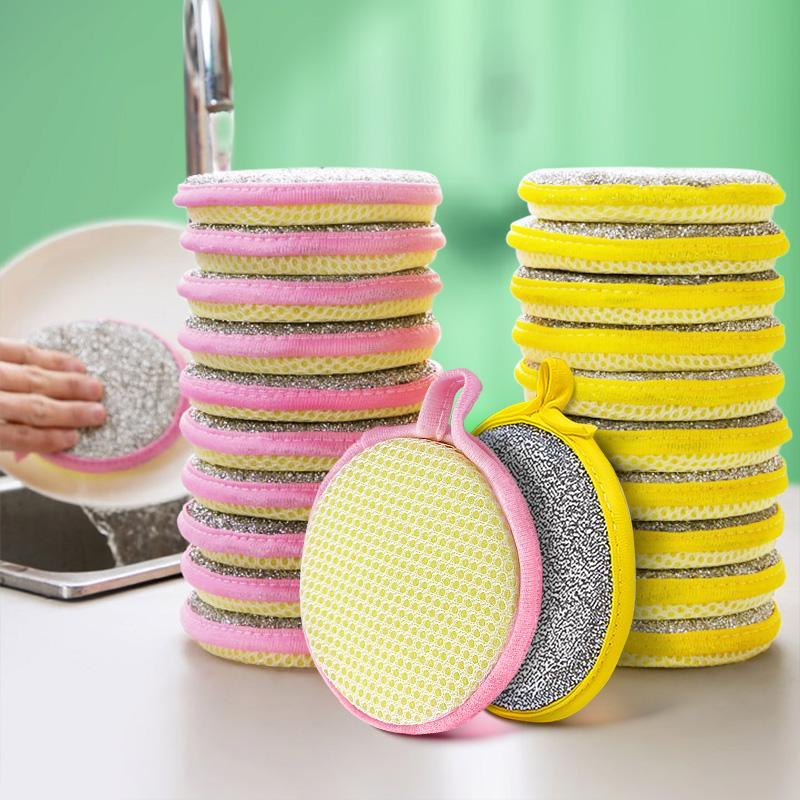 Double-sided Dishwashing Sponge, 3 Counts Scrubbing Pot Brush, Kitchen Dish Cloth, Household Dishcloth, Oil and Stain Removal Cleaning Cloth