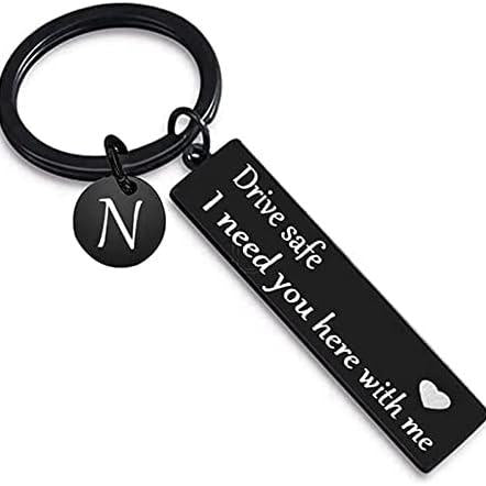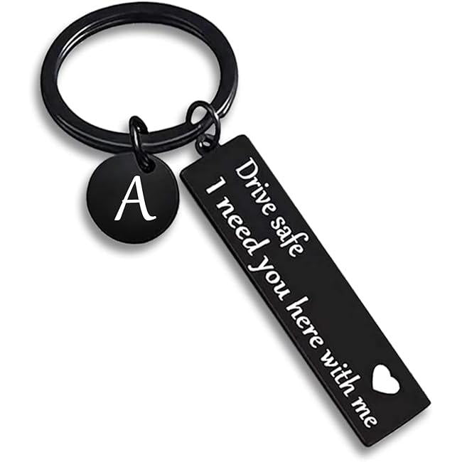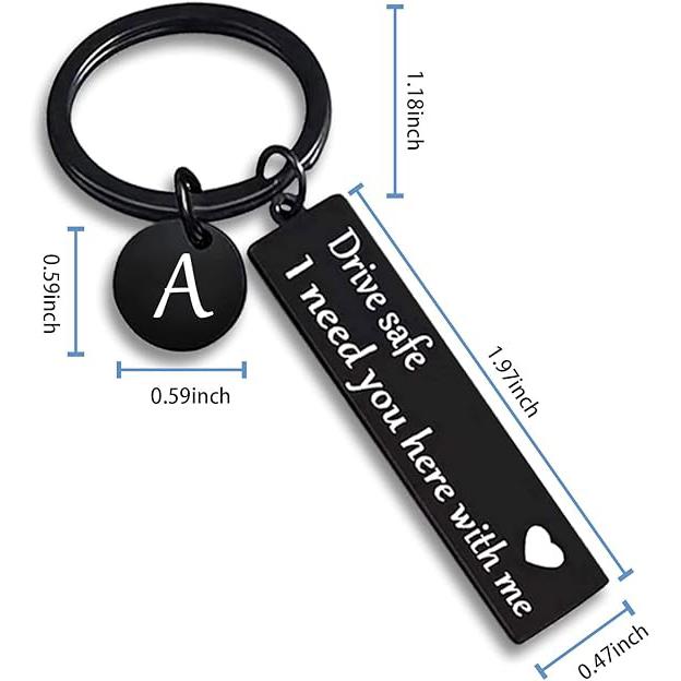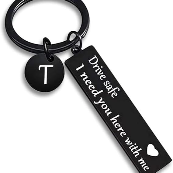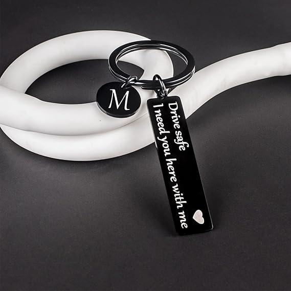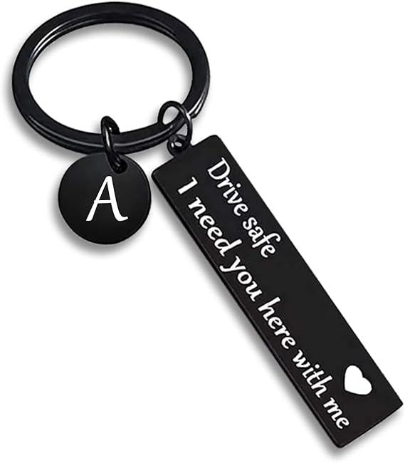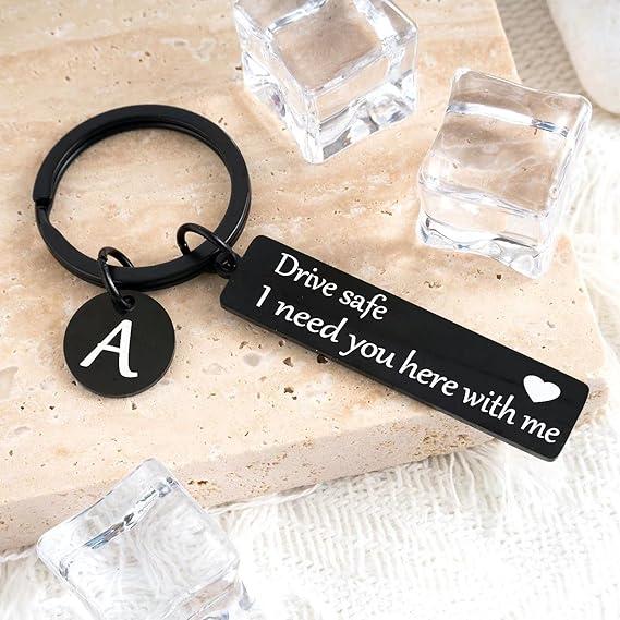 Drive Safe Keychain for Boyfriend - 26-Letter Personalized Keychain - Perfect Gift for Birthday, Christmas, Valentines Day - Various Patterns Includes Spanish styles