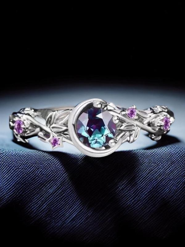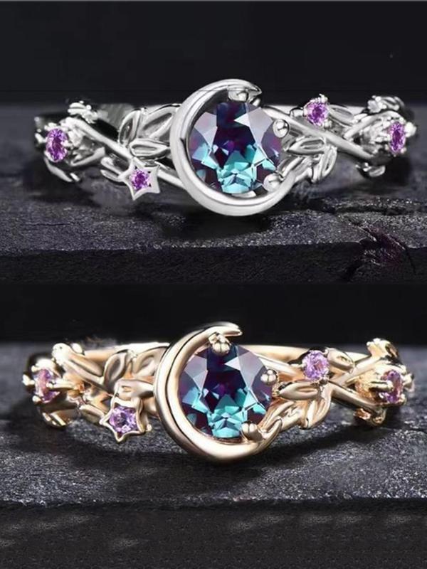 Elegant Artificial Zircon Decorated Ring, Hollow out Flower & Moon Design Ring for Women, Fashion Jewelry for Party, Daily Clothing Decor, Trendy All-match & Exquisite Jewelry for Birthday Gift