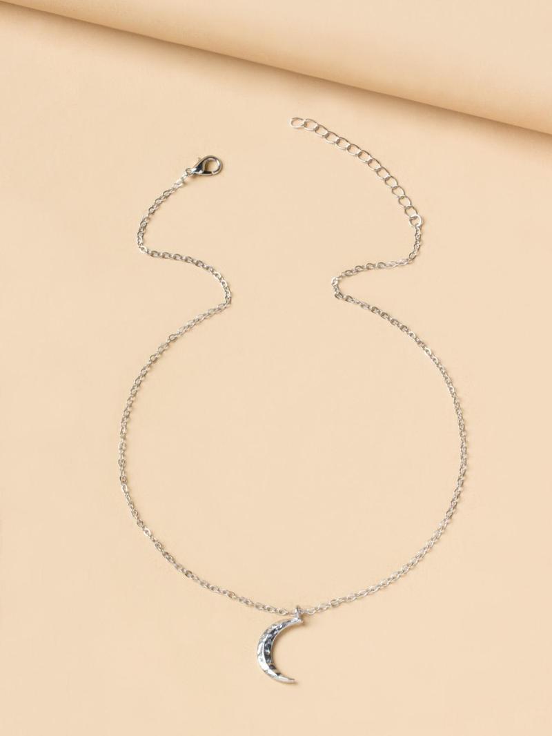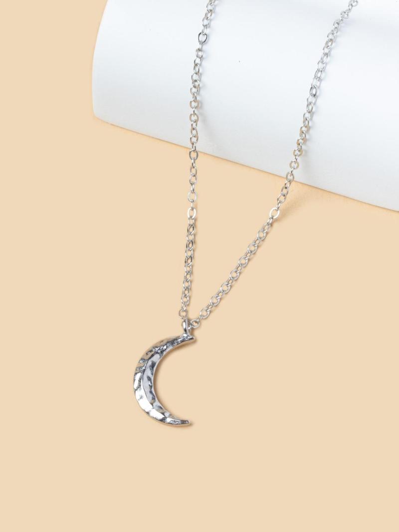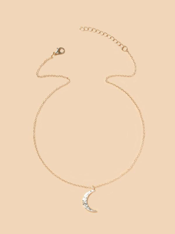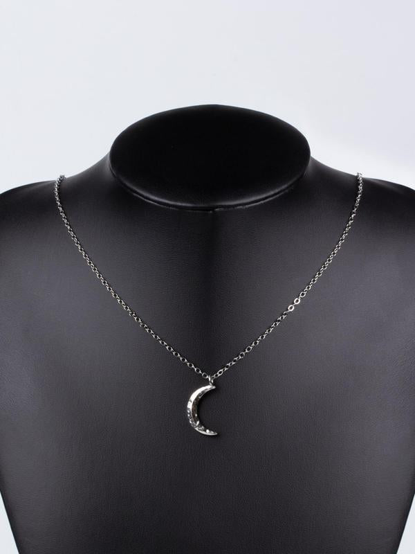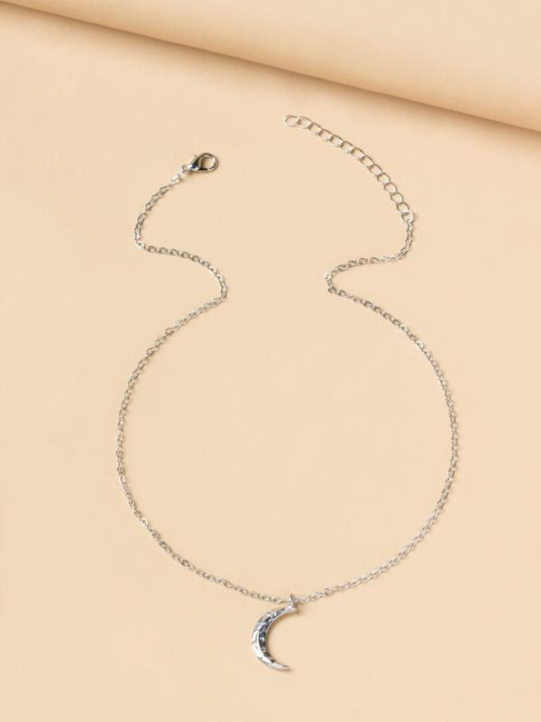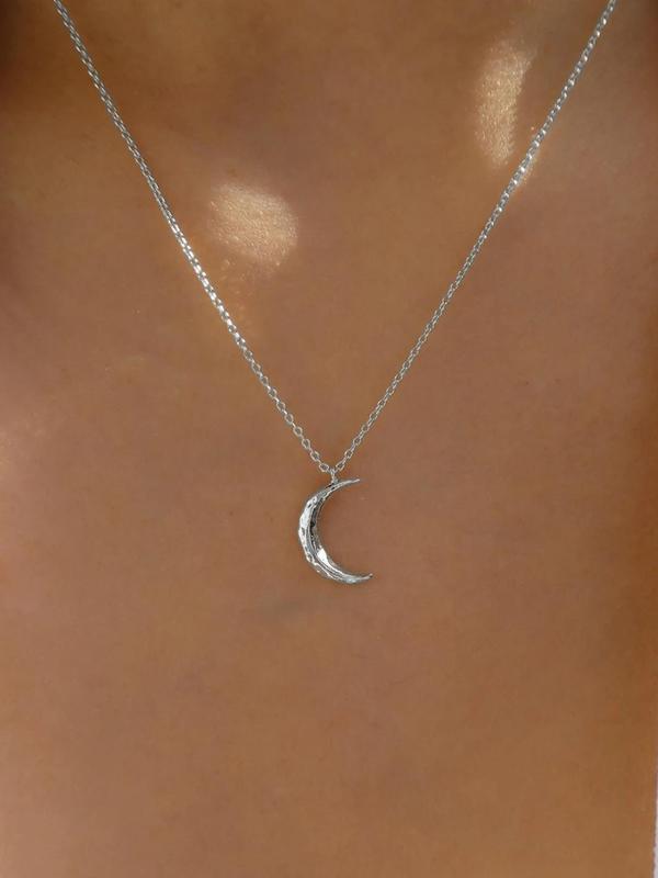 Elegant Plain Moon Pendant Necklace for Women, Trendy Clavicle Chain Necklace, Fashionable Stainless Steel Jewelry Accessories, Holiday Birthday Gift for Women and Girls