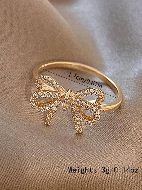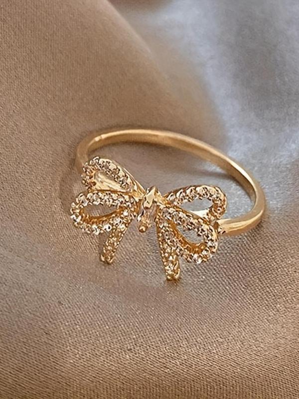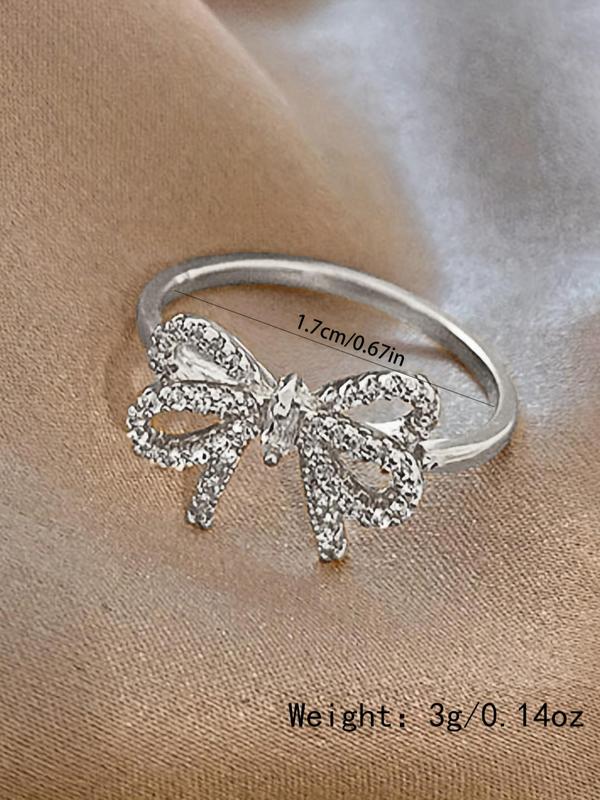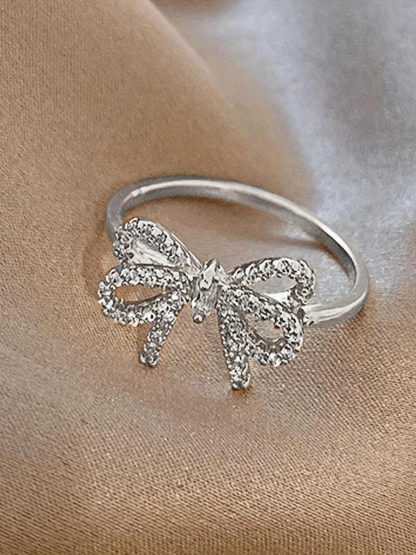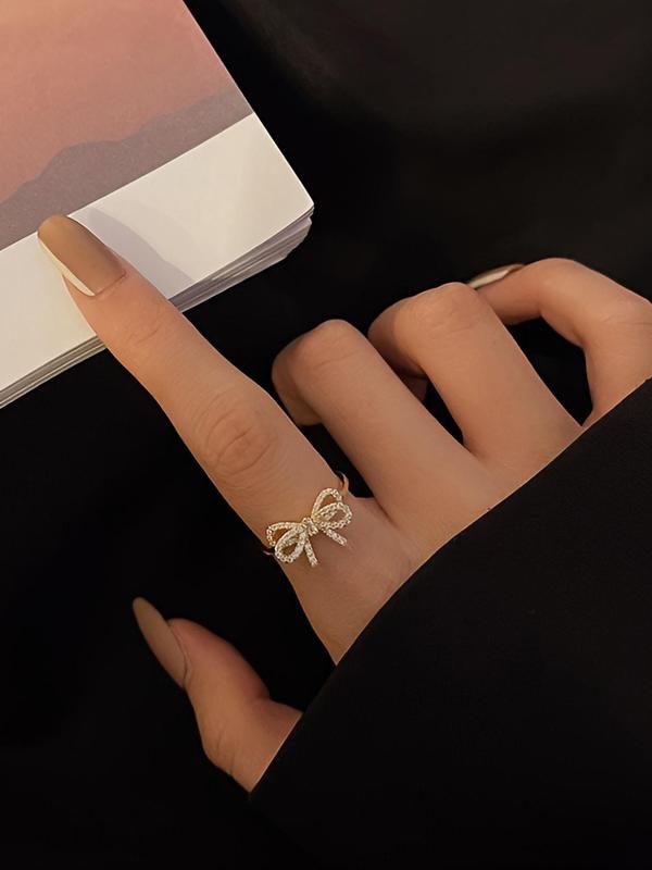 Fashion Bow Decorated Ring, 2024 New Style Elegant Rhinestone Decor Jewelry for Women for Party, Daily Clothing Decor, Trendy Jewelry for Birthday Gift