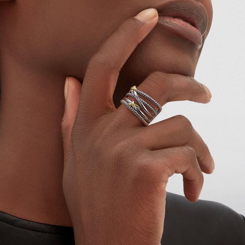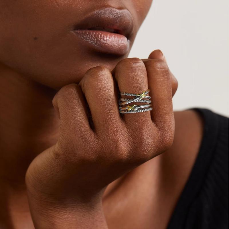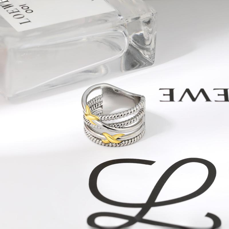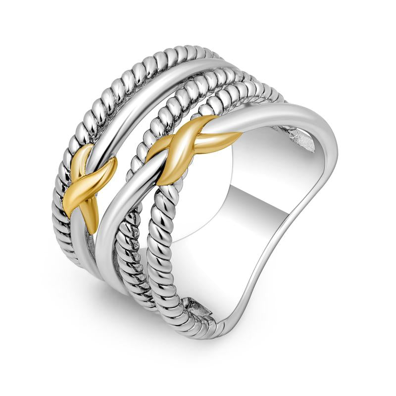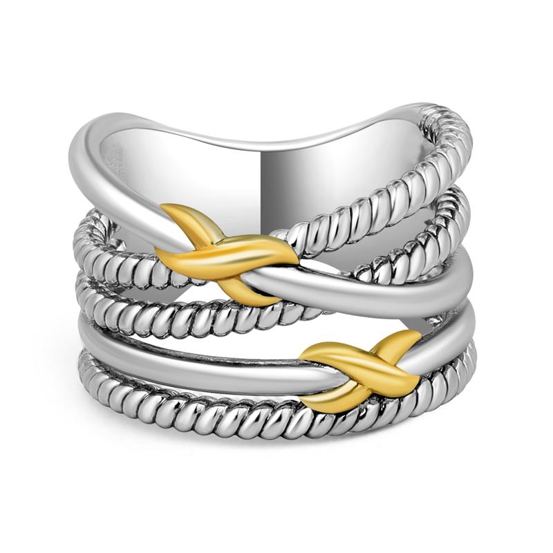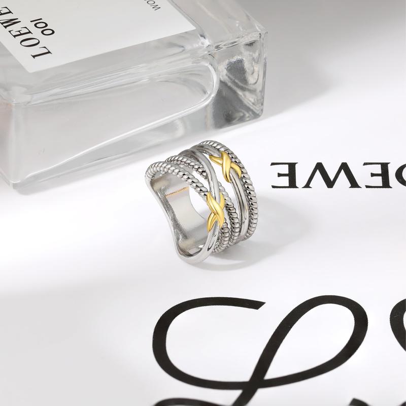 14K Gold-plated 2 Tone Hollow Crossover Statement Ring Geometric Fashion Chunky Band Rings for Men Women Vintage Wide Gift Rings