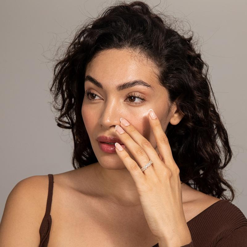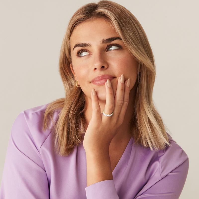 There’s just something about the shape of oval stones that makes them so perfectly suited for an eternity band.We’re all for a ring that makes our fingers look long and slender.Sandwich it between any of our round eternity bands for a cool statement look.