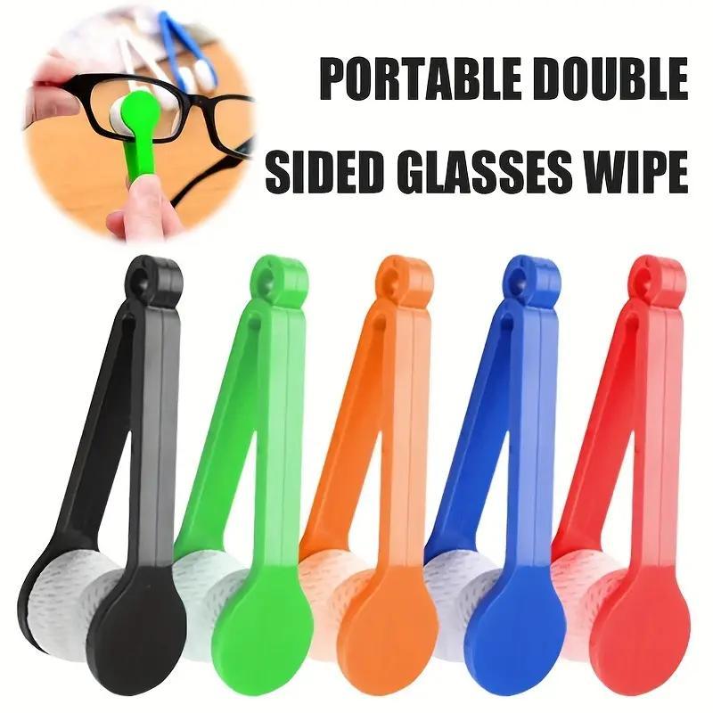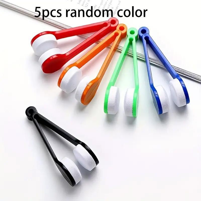 Random Color Portable Glasses Cleaning Cloth Cleaner, 5pcs Multifunctional Glasses Cleaning Tool with Handle, Mini Traceless Eye Wipe for Home