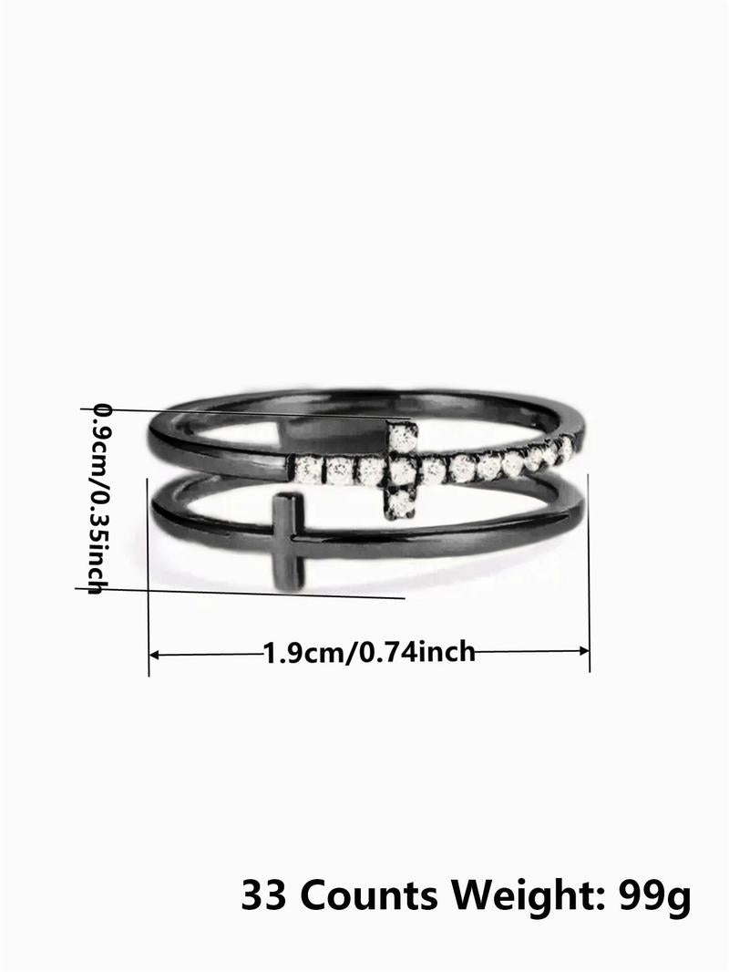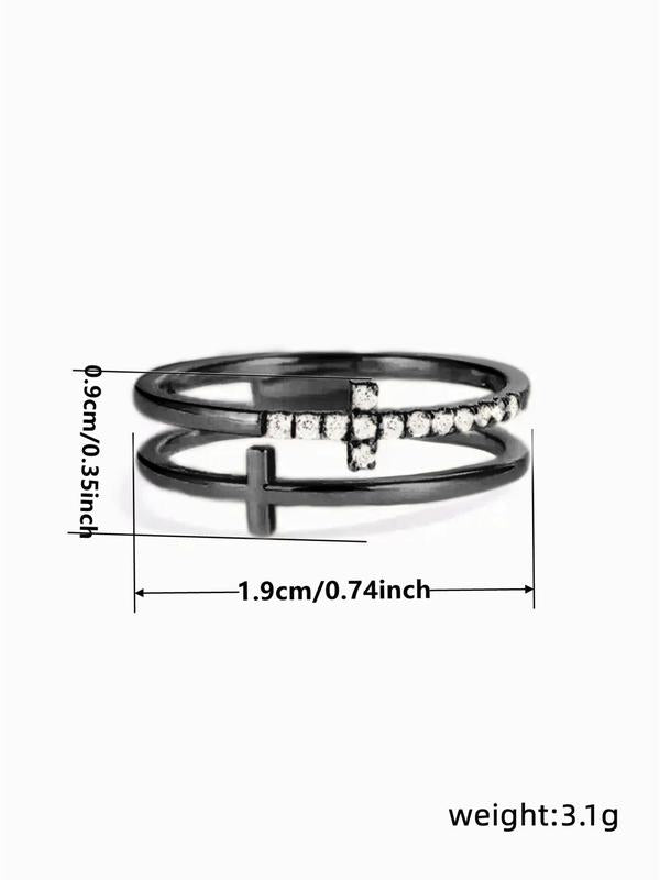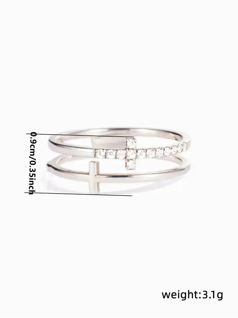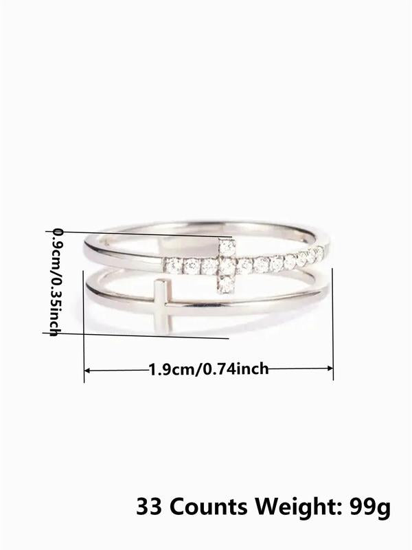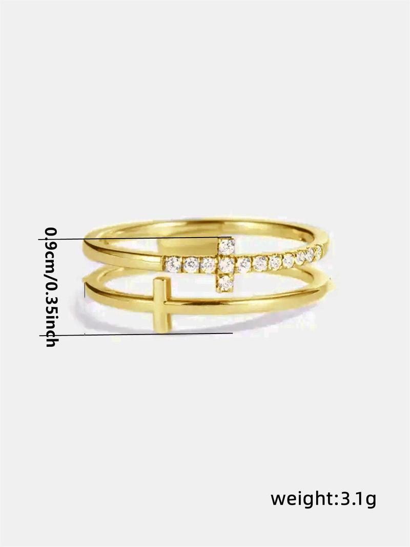 Rhinestone Decor Cross Design Double Layered Ring, Fall Fashion Jewelry Accessories for Women & Girls, Matching Jewelry