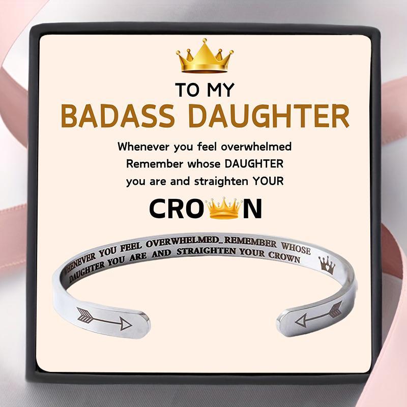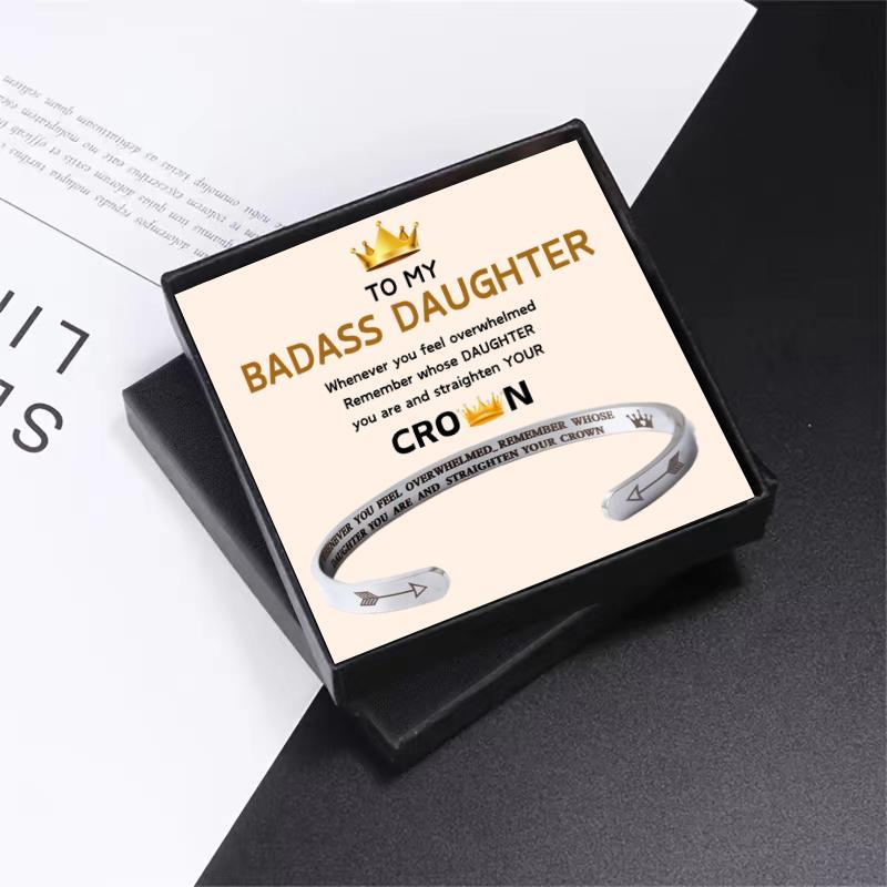Stainless Steel Cuff Bangle with Gift Card & Gift Box, 1 Set Badass Daughter Themed Open Cuff Bangle, Birthday Gift for Daughter, Christmas Gift
