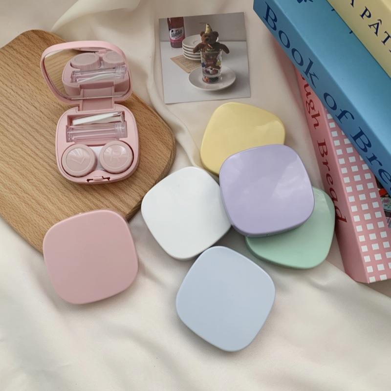Style Simple Fashion Invisible Glasses Box Couple Box Nursing Beauty Pupil Box Solid Color Portable Cosmetic Contact Lenses Storage Box
