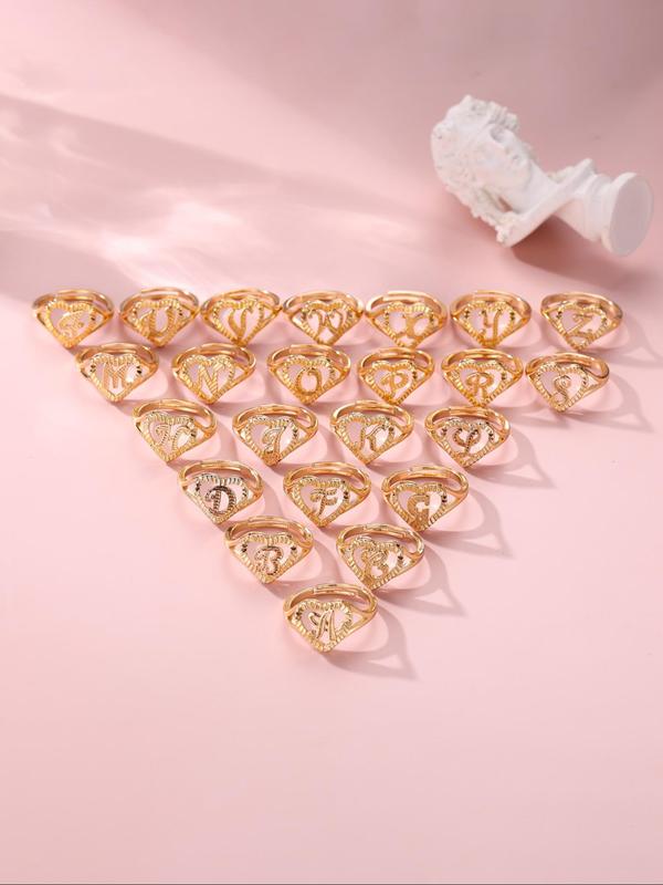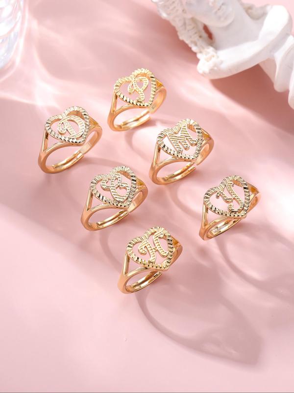 Summer Heart & Letter Design Cuff Ring, 2024 New Style Adjustable Open Ring, Adjustable Opening Stackable Jewelry Gift for Women & Girls for Back To School, Fall Outfits, Fall Freshness