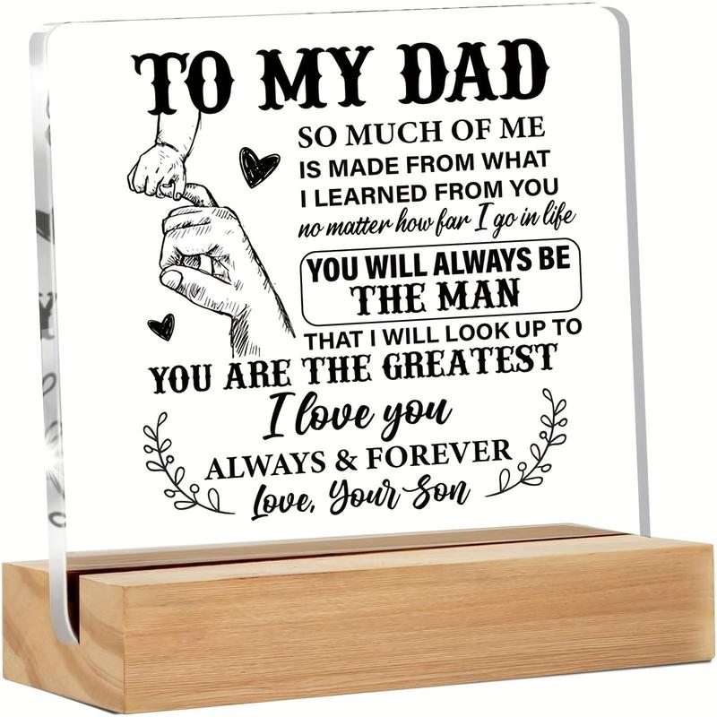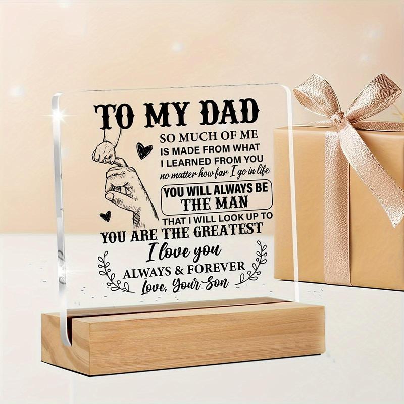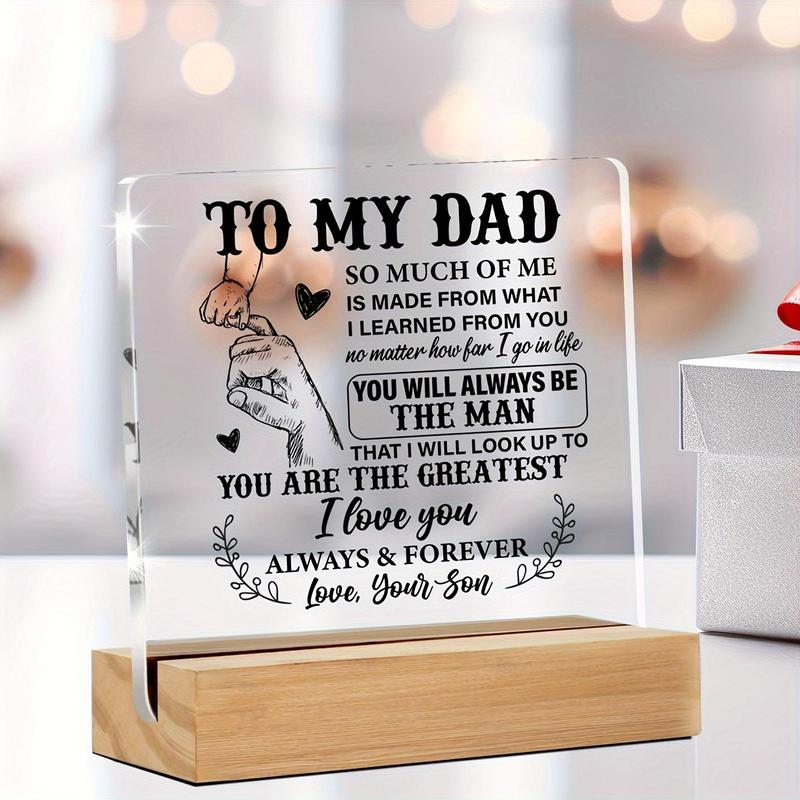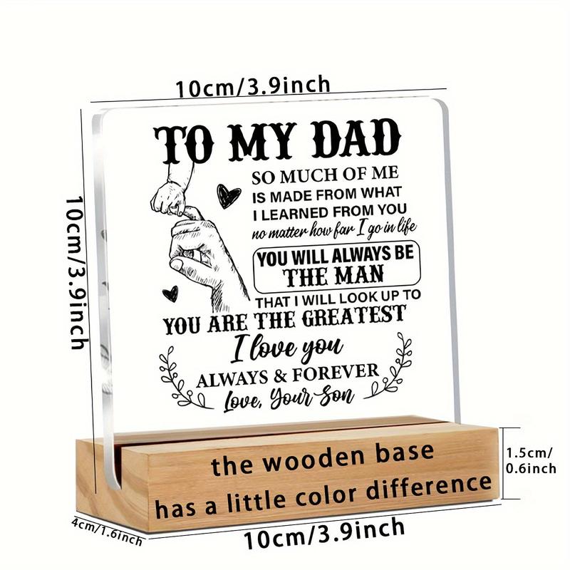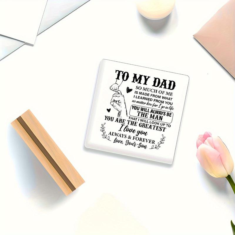 [Personalized Decor]: Add a personalized touch to your home or office with this acrylic ornament, featuring a heartfelt "to my dad" message that conveys your personal sentiment.