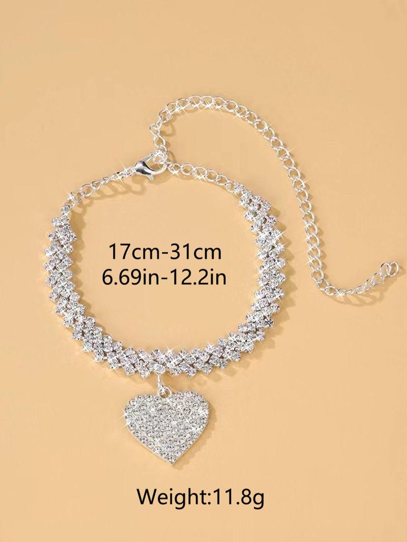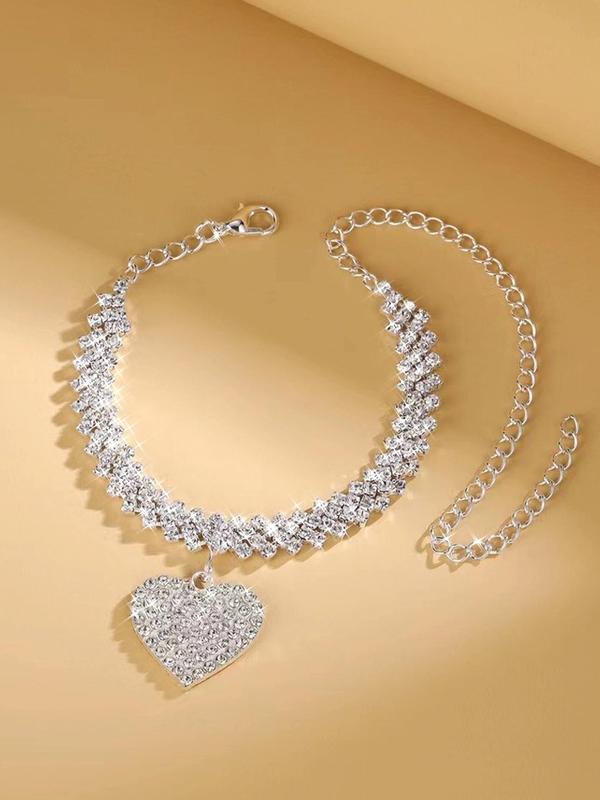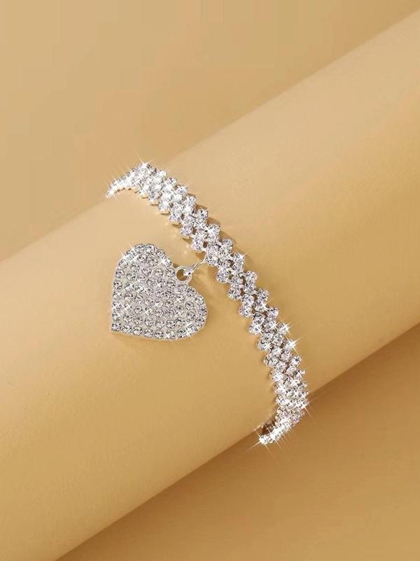 Women's Elegant Trendy Rhinestones Decorated Summer Anklet with Heart Design, Fashion Summer Jewelry for Party, Daily Clothing Decor, Trendy All-match & Exquisite Jewelry for Birthday Gift